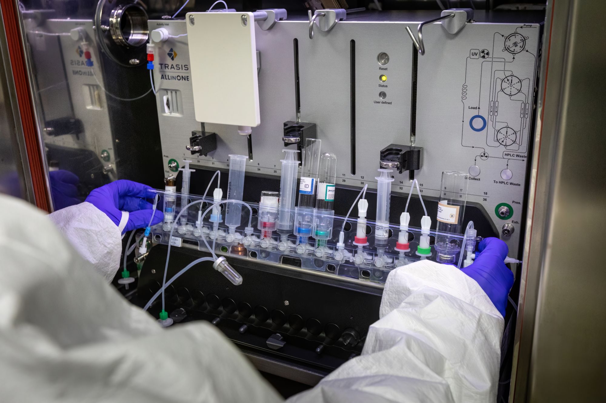 В сентябре 2025 года в нашем центре успешно был введен в эксплуатацию новый модуль синтеза AllInOne производства бельгийской компании TRASIS. Это оборудование применяется для изготовления радиофармацевтических лекарственных препаратов (РФП) на основе радионуклида фтор-18.
